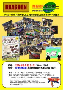 2026年3月22日鹿児島県日置市でのイベント「Pichi Pichiやまんかん2026」内に全米で大人気、スポンジ弾のトイガン「NERF(ナーフ)」を使った安全で刺激的なサバゲー体験コーナーが登場します。